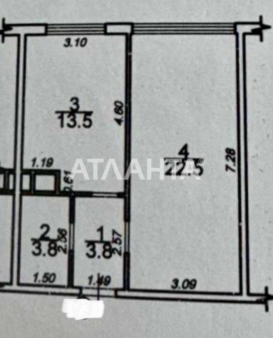Общая площадь 44 метра.