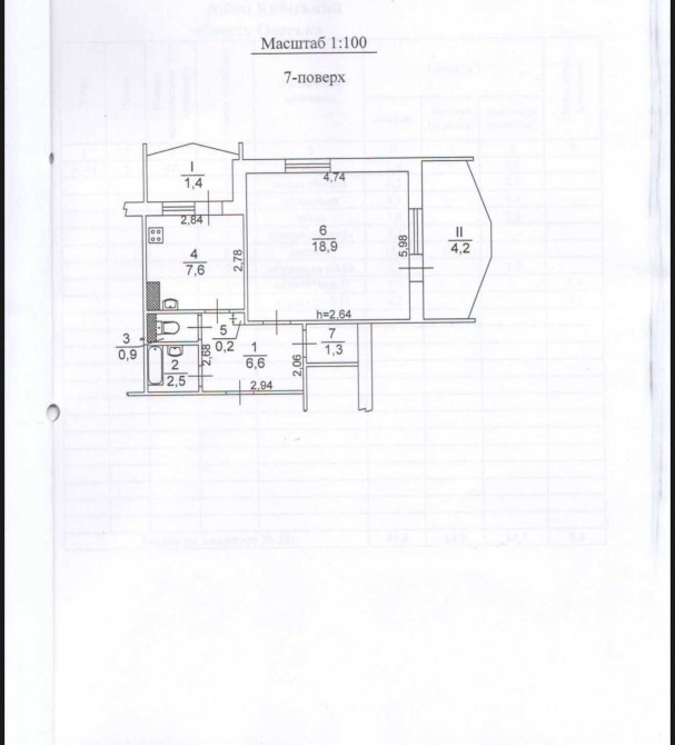 • Общая площадь 44 м2