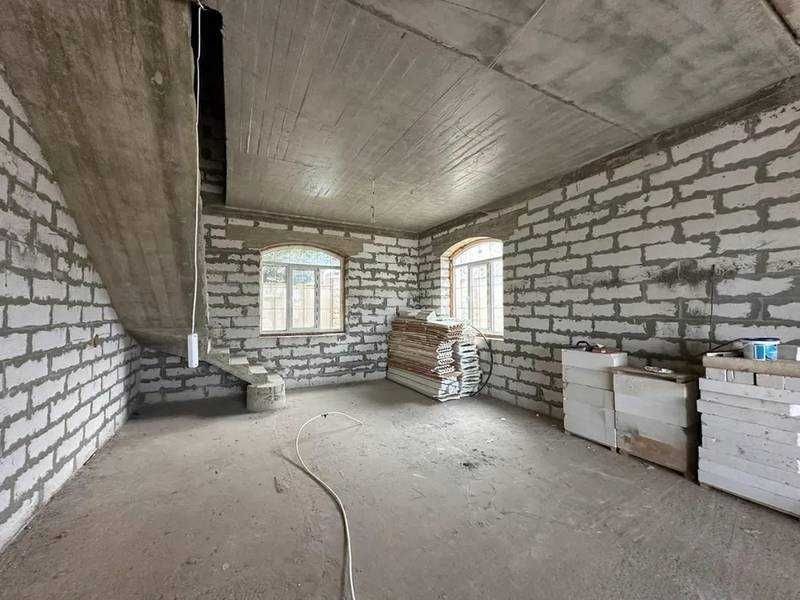 В продаже 2-х этажный дом ,из газобетона уплотнитель газобетон. S=180 кв.м. 1-ый этаж: кухня-студия, гардеробная, с/у, бойлерная, кладовка. 2-й этаж: 3 комнаты, 2 гардеробные, с/у.