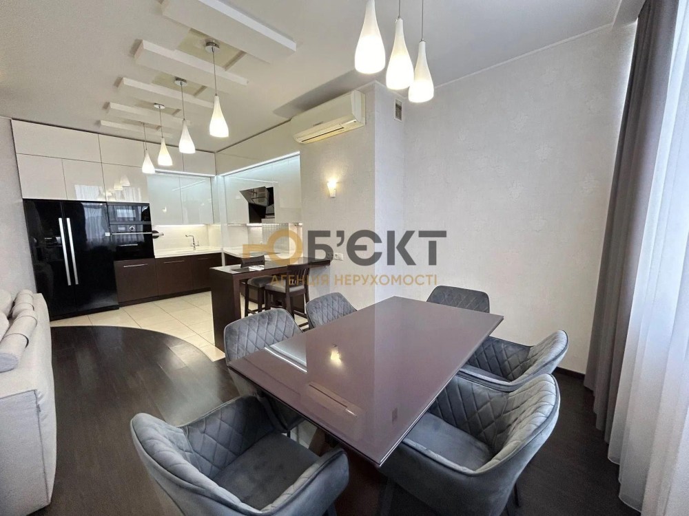 Київ, метро Позняки, Драгоманова 40е, 3-х кімнатна квартира. Драгоманова 40е, 24-й поверх, простора видова квартира 3-х кімнатна, з сучасним якісним ремонтом. Загальна площа 105.5, житлова 54.4. Комора, гардероб. Повністю укомплектована меблями. Вбудована кухня з необхідною побутовою технікою, натуральна столярка, німецький дубовий паркет, кахель з підігрівом, встановлені фільтри на воду, бойлери на кухні та в коморі, інверторні кондиціонери, нові ТV, велика лоджія з підігрівом, чудовий краєвид на місто. "Добробут", супермаркети, два ліцеї, "Спортлайф", поряд парк із озером та зоною відпочинку, до М "Позняки" - 10 хвилин пішки. Все лишається у квартирі. 044 200 10 80