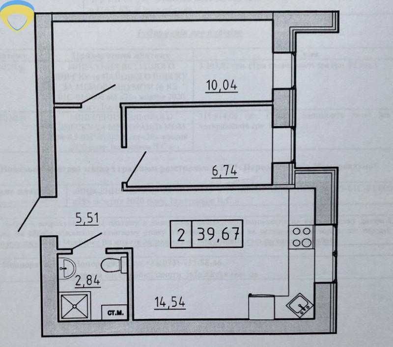 • Общая площадь 40 м2
