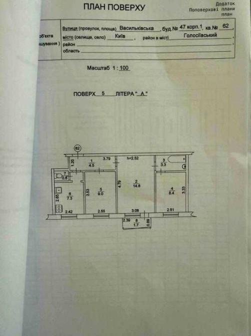 Продаж 3-кімнатної квартири у Голосіївському районі (53 м², 5-й поверх).