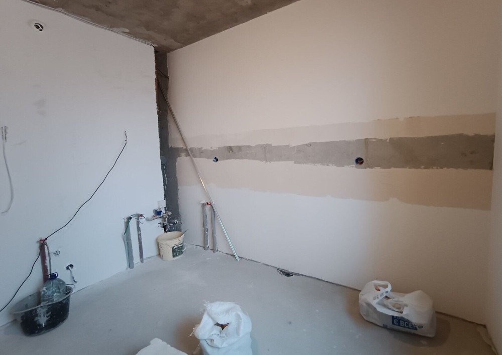 - Стяжка підлоги, чистова шпаклівка стін, розводка електрики та води