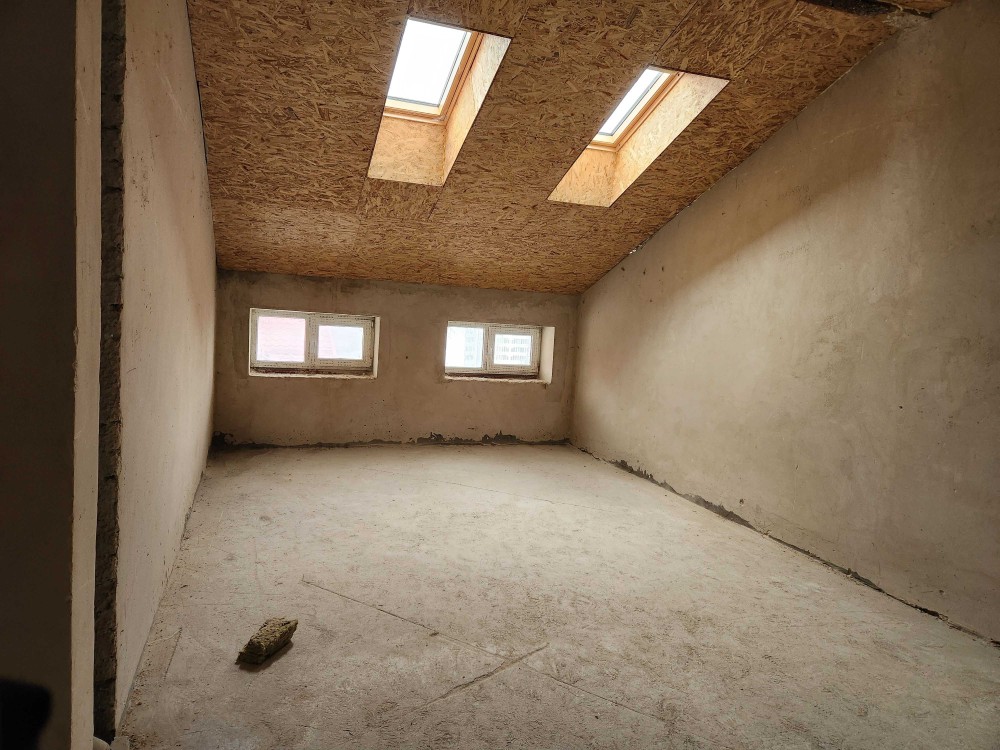 Продається простора дворівнева квартира з мансардними вікнами, балконом та чорновим ремонтом — ідеальний варіант для тих, хто хоче створити власний дизайн у великому сучасному просторі.