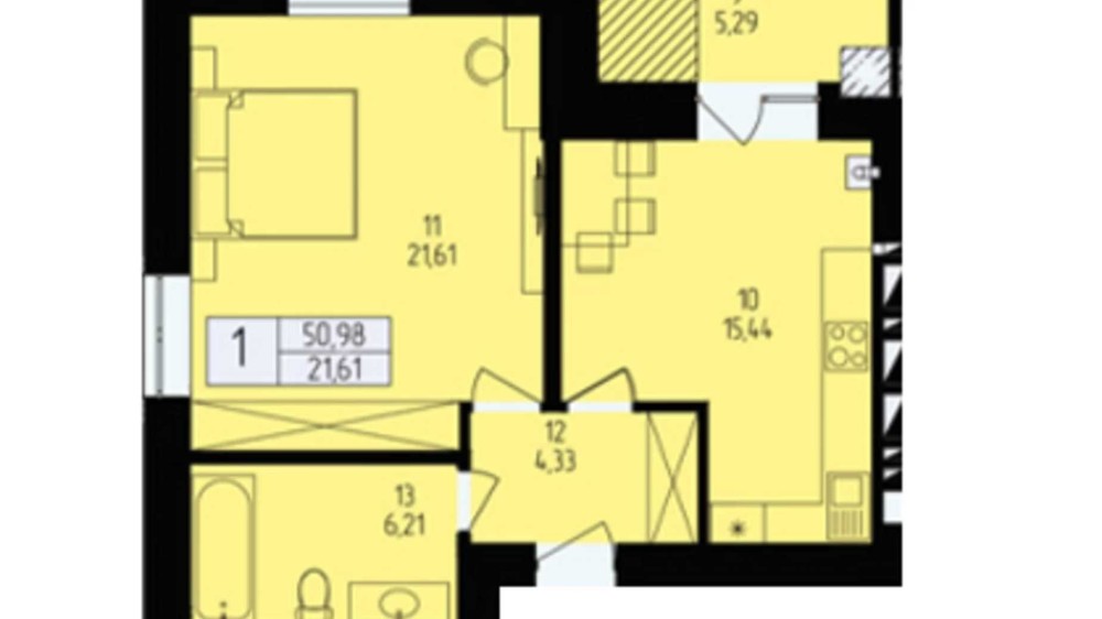 Квартира легко переплановується у двокімнатну шляхом площі і наявності двох вікон у кімнаті.