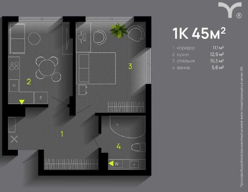 • Общая площадь 45 м2