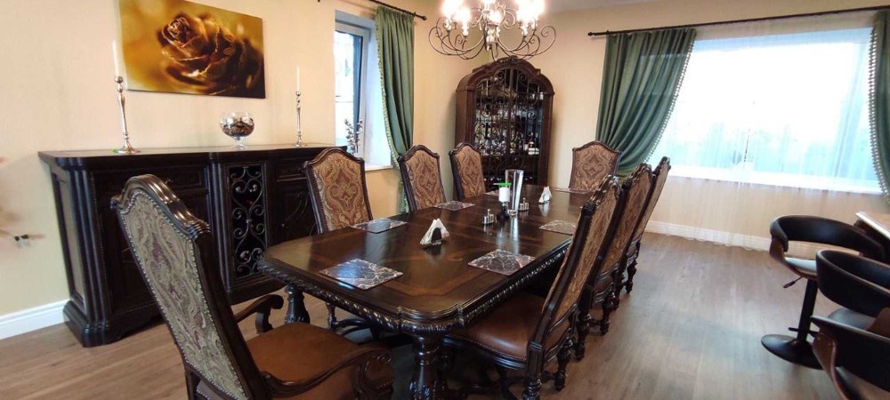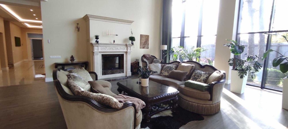 Площа будинку 600 м2 + окремий будиночок охорони, тераса. У будинку 7 житлових кімнат різного призначення.