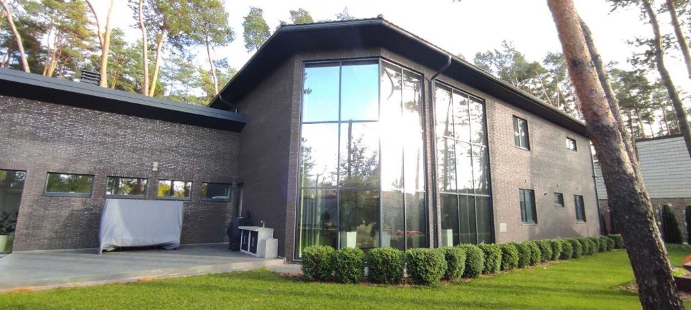 Продаж нового домоволодіння із власним лісом 25 соток у Петропавлівській Борщагівці. Унікальний проект зі скляною фасадною стіною.