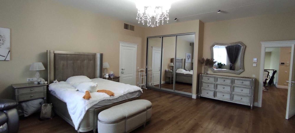 У будинку є ліфт виробництва Італії. У всьому будинку американські меблі преміум-класу Art Home Furniture. У господарській спальні ліжко King Size.