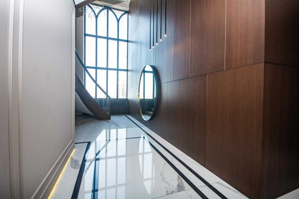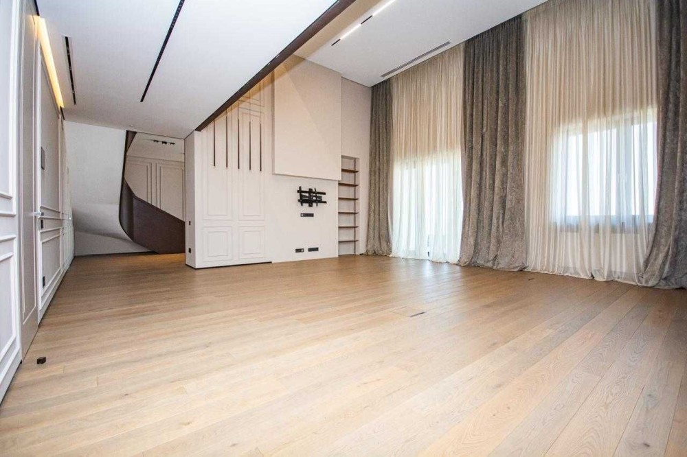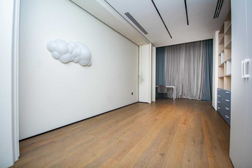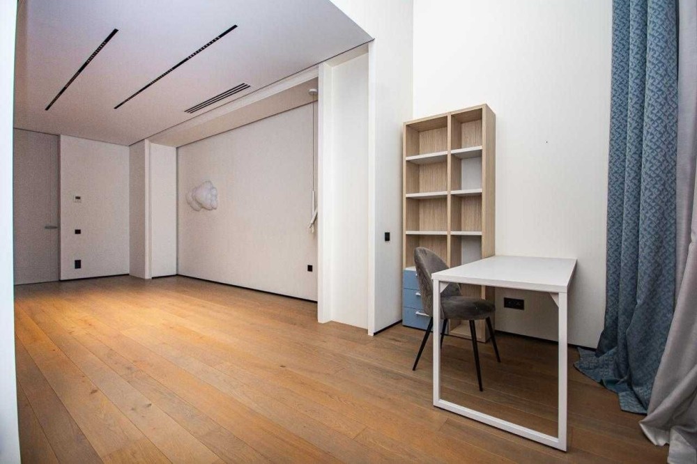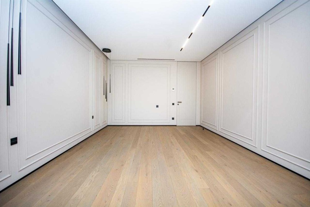 Дуже коштовне оздоблення - всі поверхні натуральний мрамор, дубовий паркет, шпоновані стінові панелі Poliform. Вся сантехніка Gessi.