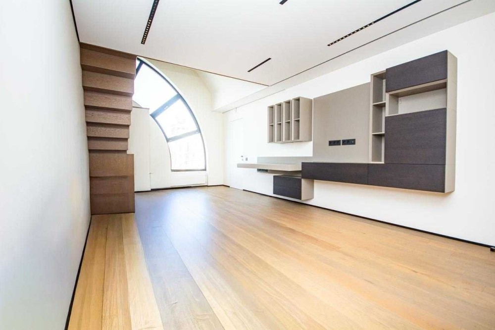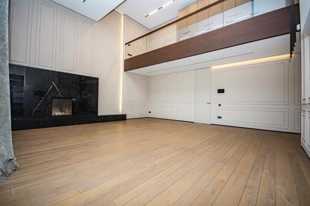 Загальна площа 330 кв. м. 3 рівні. Висота стель в квартирі від 3 до 7 мерів, є друге світло.