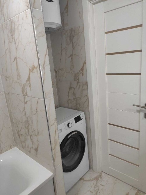 Є посудомийка, бойлер, кондиціонер, газова поверхня, електро духовка, стіралка, мікрохвильова, холодильник, витяжка, TV, підсвітка над стільницею.