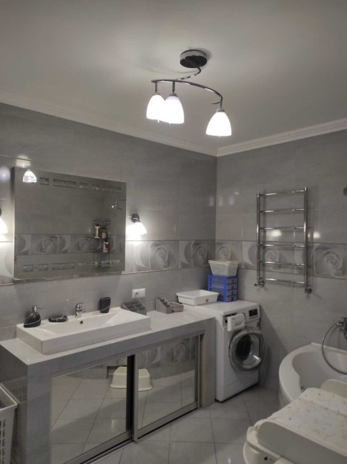 Квартира здається з меблями та побутова технікою. Електрочайник, індукційна варочна поверхня, духова шафа, мікрохвильова піч, холодильник, додаткова окрема морозильна камера, посудомийна машина, пральна машина з сушкої 2в1, фільтр питної води - зворотній осмос, Wi-Fi, інтернет, Smart TV у всіх кімнатах.