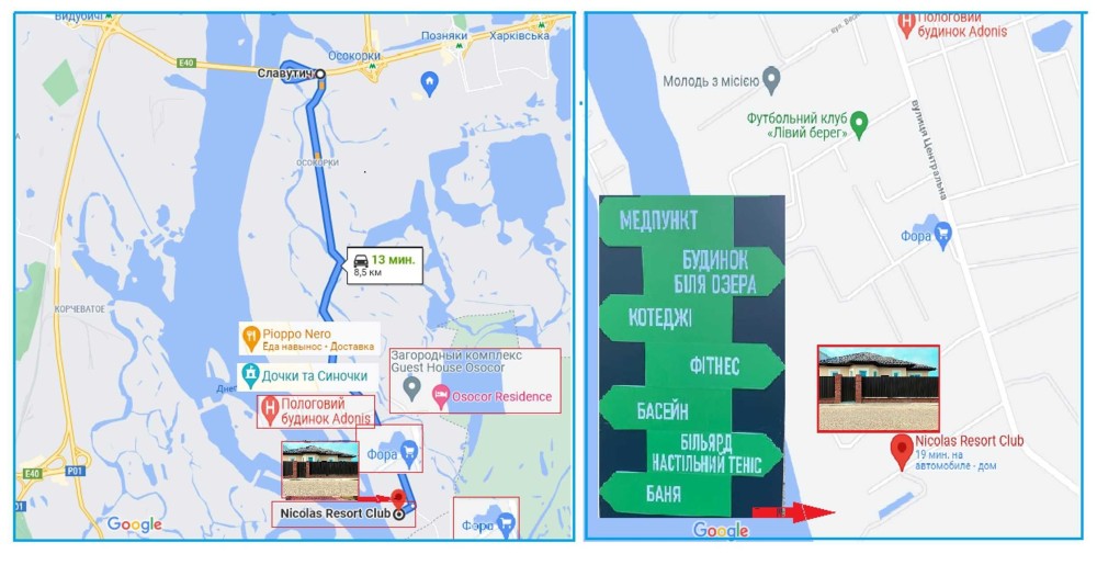 • Nicolas Resort Club на березі Дніпра, з парком та озером для риболовлі, басейни, спортзал, більярд, теніс, альтанки з мангалом