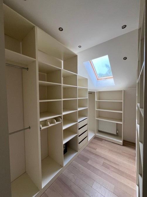 На другому поверсі: три спальні, одна доросла із виходом в гардеробну кімнату, дитячий кабінет та дві дитячі спальні також санвузол з душовою кабіною та зона для зберігання речей (комора).Також ще одна комора розташована під сходами, вхід до неї з заду будинку (з вулиці).