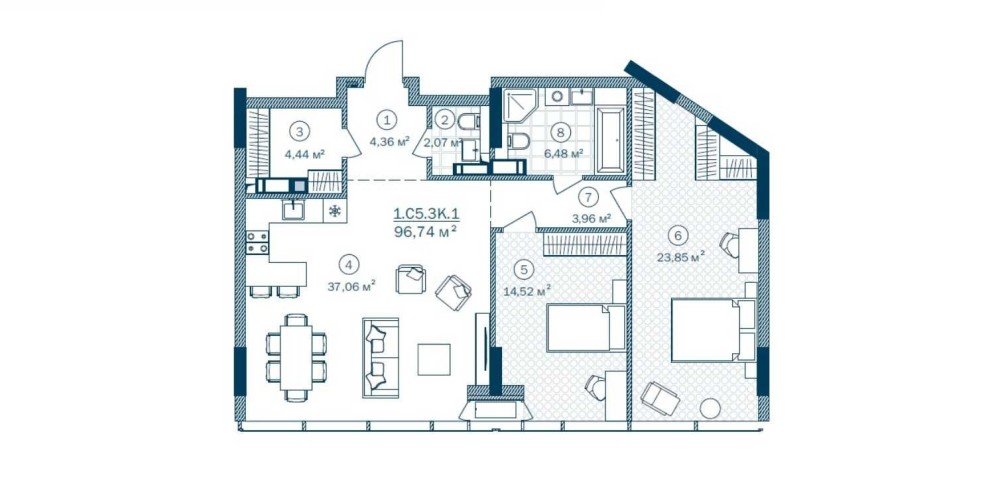 • Общая площадь 96.74 м2