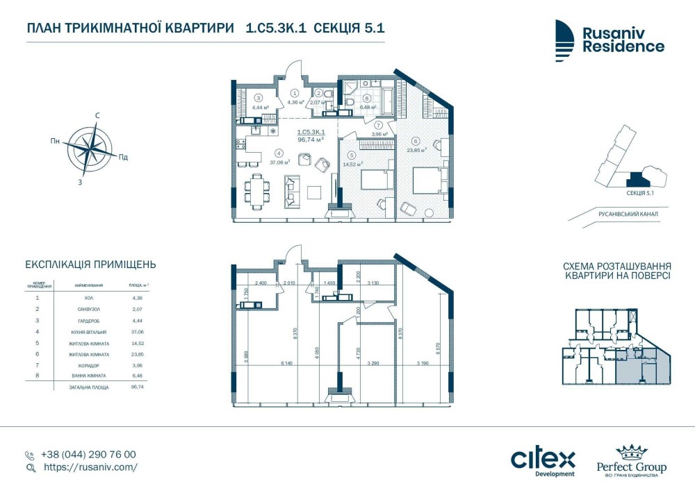 - Загальна площа: 96,74 м²