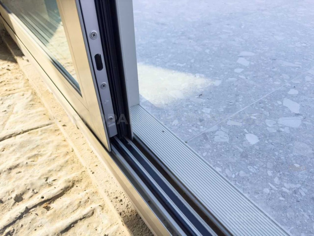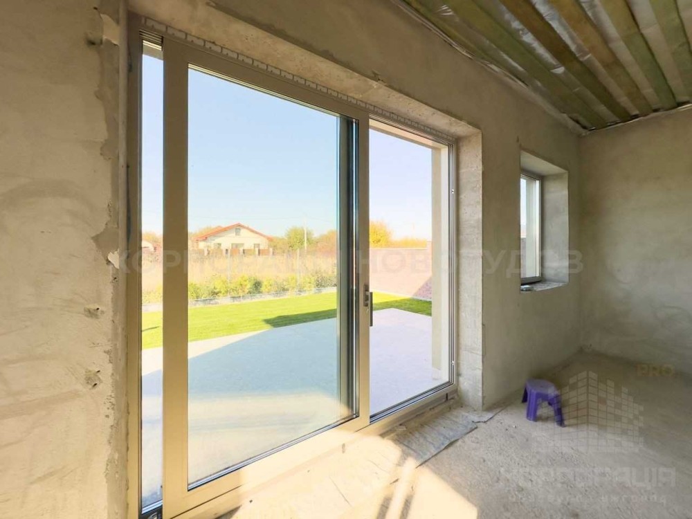 Алюмінієві вікна зі слайдером для виходу на терасу. Зовнішні підвіконники із граніту.