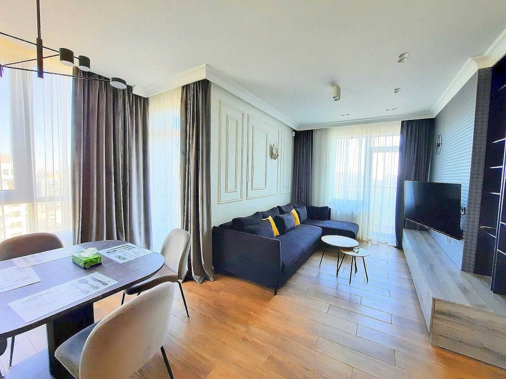 Код: 2633. ДОЛГОСРОЧНАЯ АРЕНДА (без выселения на летний период). Стильная квартира с отдельным кабинетом в Ж/К «Аквамарин», ул. Фонтанская дорога, 118А (16я ст. Б. Фонтана), 3/24 эт. дома, общая площадь 80 кв. м. Авторский ремонт, кухня-студия (25 кв. м.), спальня, кабинет, две гардеробные, санузел с душем. Современная мебель и бытовая техника. Аренда от 6-ти месяцев и более. Стоимость может варьироваться в зависимости от срока аренды. Перед просмотром уточните наличие и детали по VIBER, WHATSAPP или TELEGRAM, указав «КОД» из объявления. КОМИССИЯ ЗА УСЛУГИ РИЭЛТОРА - 50% от месячной аренды (разовая оплата при оформлении договора).