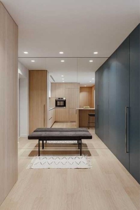 19 эт./23 эт. дома, 80 м., студия, спальня с гардеробной и детская/кабинет, открытый балкон. Гардеробная, шкафы. Кондиционирование, теплые полы.