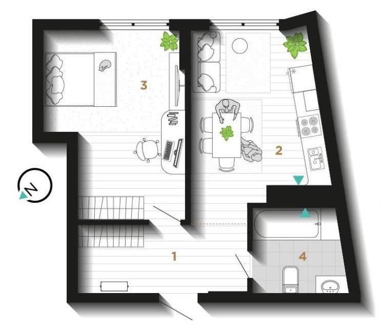 • Общая площадь 44 м2