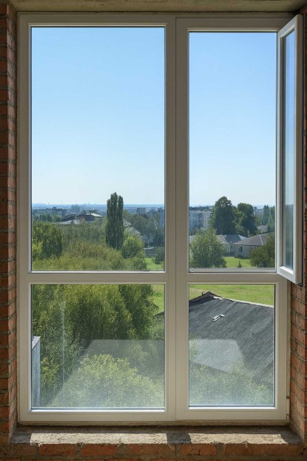 - Вікна: панорамні, з видом на центр + додаткове у ванній