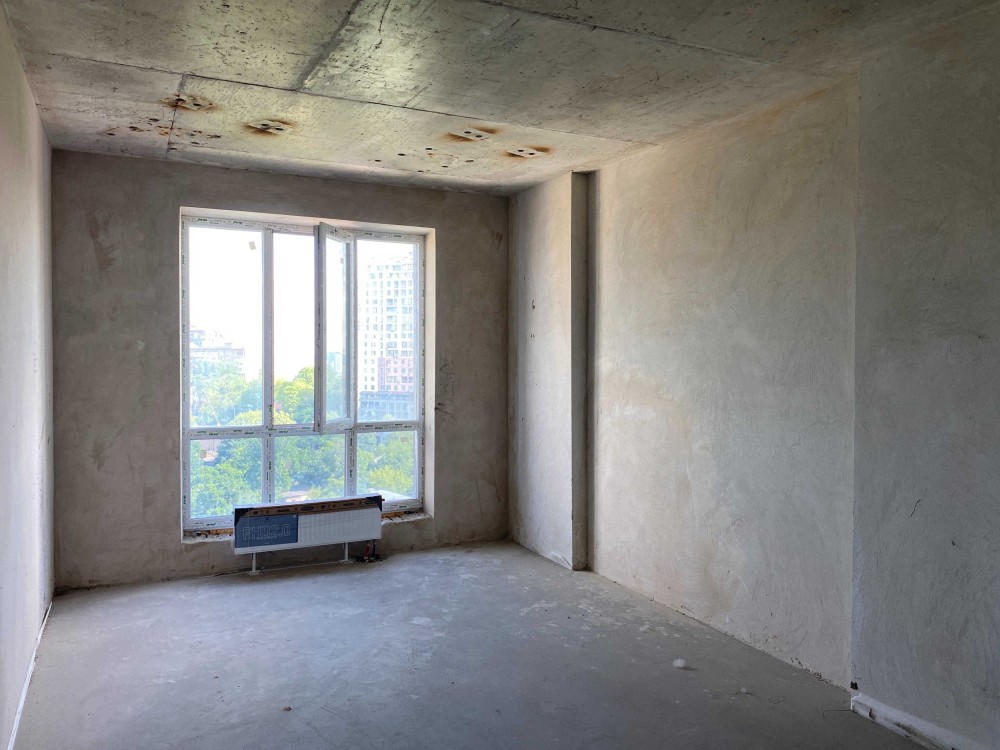 чорнова штукатурка, стяжка; встановлено вогнестійкі металеві протиударні вхідні двері; змонтовані системи опалення з радіаторами, які підключені до автономної котельні у будинку; встановлено Індивідуальні лічильники на воду, тепло та електрику.