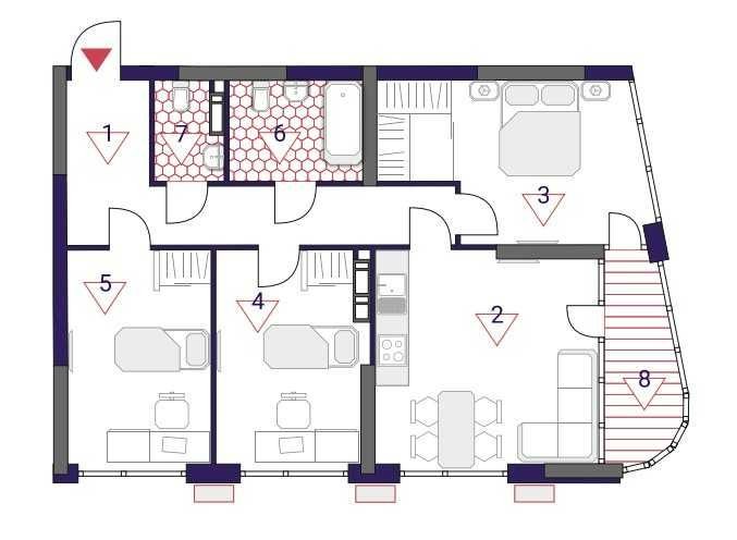 • Трехкомнатная