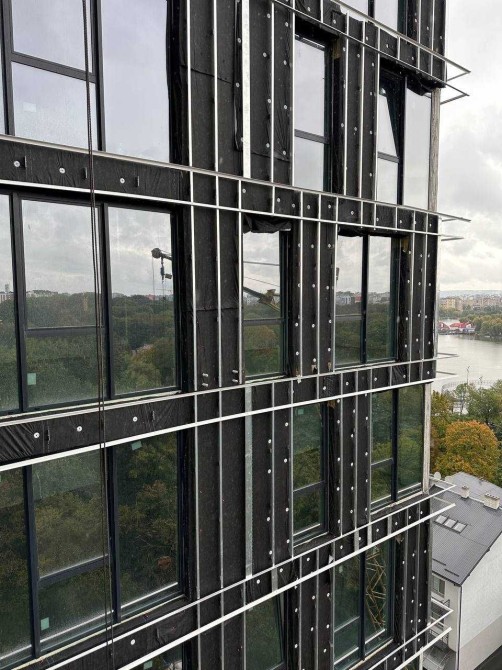Зроблено вентильований фасад будинку — навісна конструкція з каркасу, теплоізоляції та облицювання, між якими залишається вентильований повітряний проміжок. Ця система забезпечує відведення вологи, підвищує енергоефективність будівлі, захищає від погодних умов та покращує зовнішній вигляд будинку.