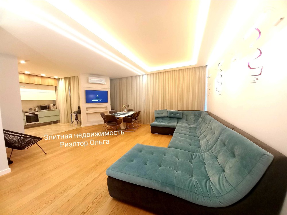 Планировка: две спальни с двуспальными кроватями + детская комната с двумя раскладывающимися диванами (либо кабинет) + кухня- гостиная + три сан узла + две террасы +гардеробная+ прачечная!