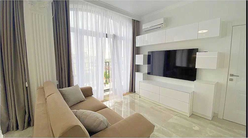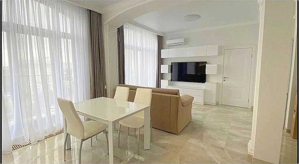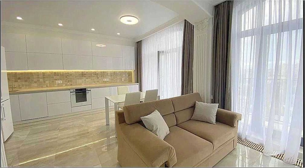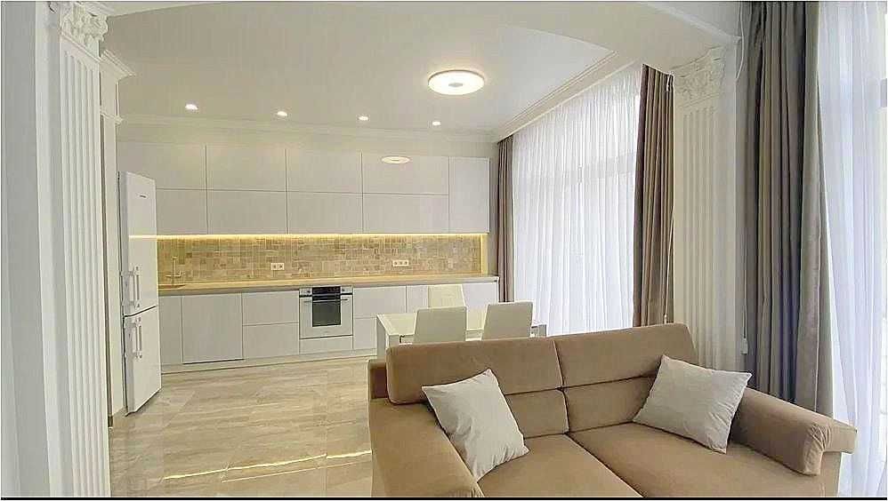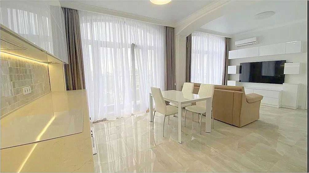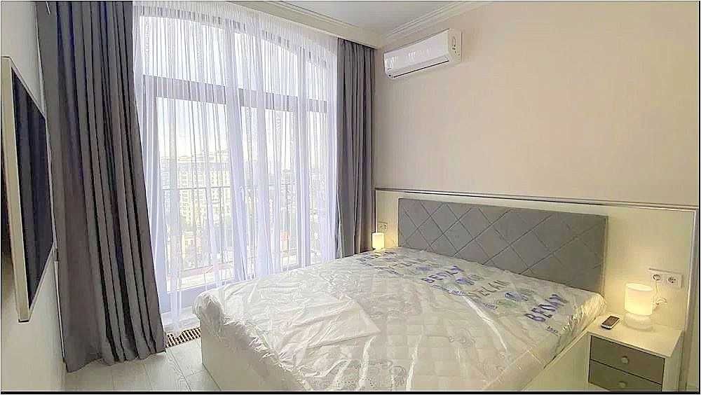К долгосрочной аренде предлагается односпальная квартира в жк Граф, ул. Азарова. 12 эт., 57 м., студия и спальня, балкон с баковым видом на море. Квартира укомплектована мебелью и техникой вплоть до посудомоечной машины.