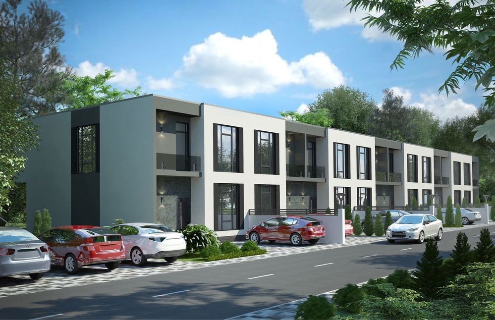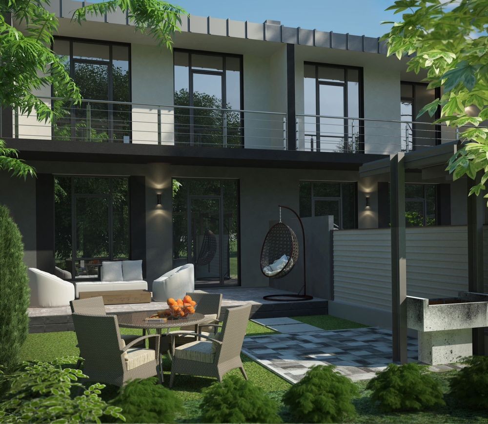 Є 3 типи будиночків. Площа такнхаусу від 125м2 (+3 м2+ 10 м2 лождія на другому та 20 м2 тераса на першому.