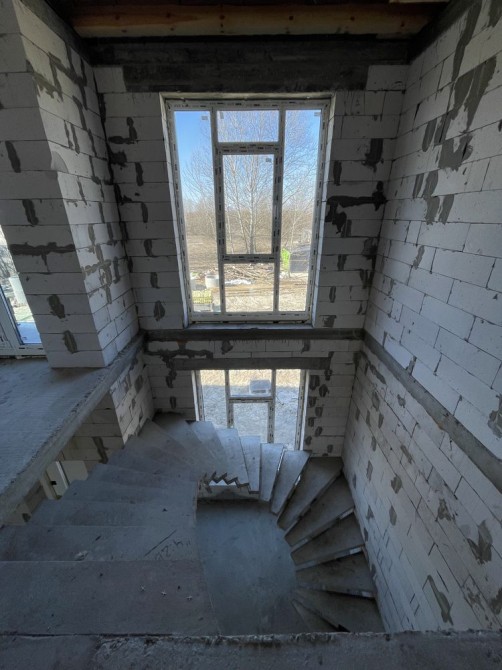 Висота стель 1 пов 3.40м, 2 пов 3м.Фундамент- палі 50 см ширина та 2.50 м глубина , стрічковий фундамент та монолітна плита. Стіни газоблок. Утеплення мінеральна вата. Вітражні вікна Rehau.