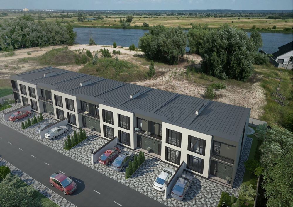 Сучасні таунхауси з 2 лоджіями та великою терасою в супер локації з видом на озеро з виходом на пляж у красивому та тихому місці біля Osocor Residence.10 хв до метро Славутич.Закрита територія.