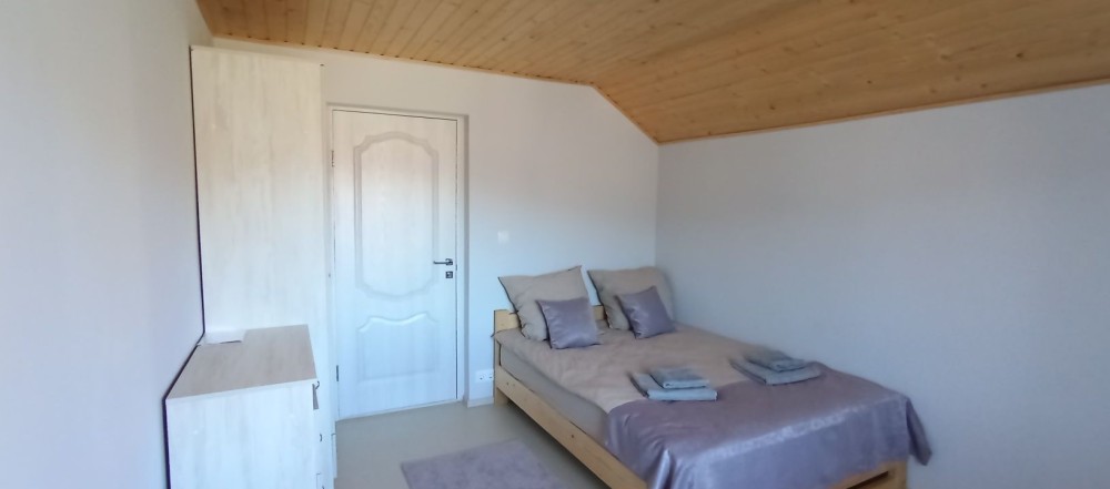 На другому поверсі три кімнати,(дві двомісні та одна тримісна) туалет,балкон.Загалом сім повноцінних спальних місць.