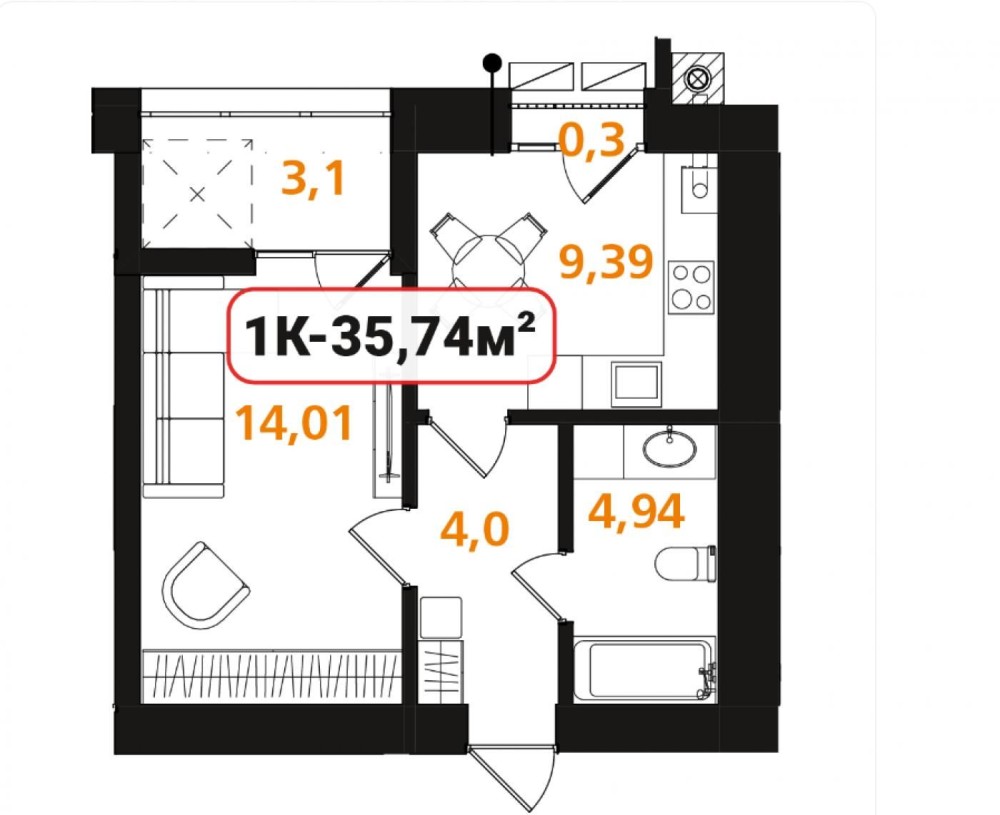 • Общая площадь 35.7 м2