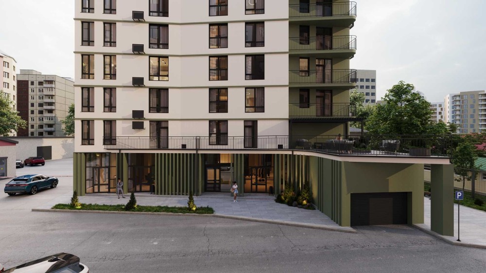 Підземний паркінг із доступом до ліфта виконує також функцію укриття, а малоквартирний формат будинку гарантує тишу та приватність кожному мешканцю.