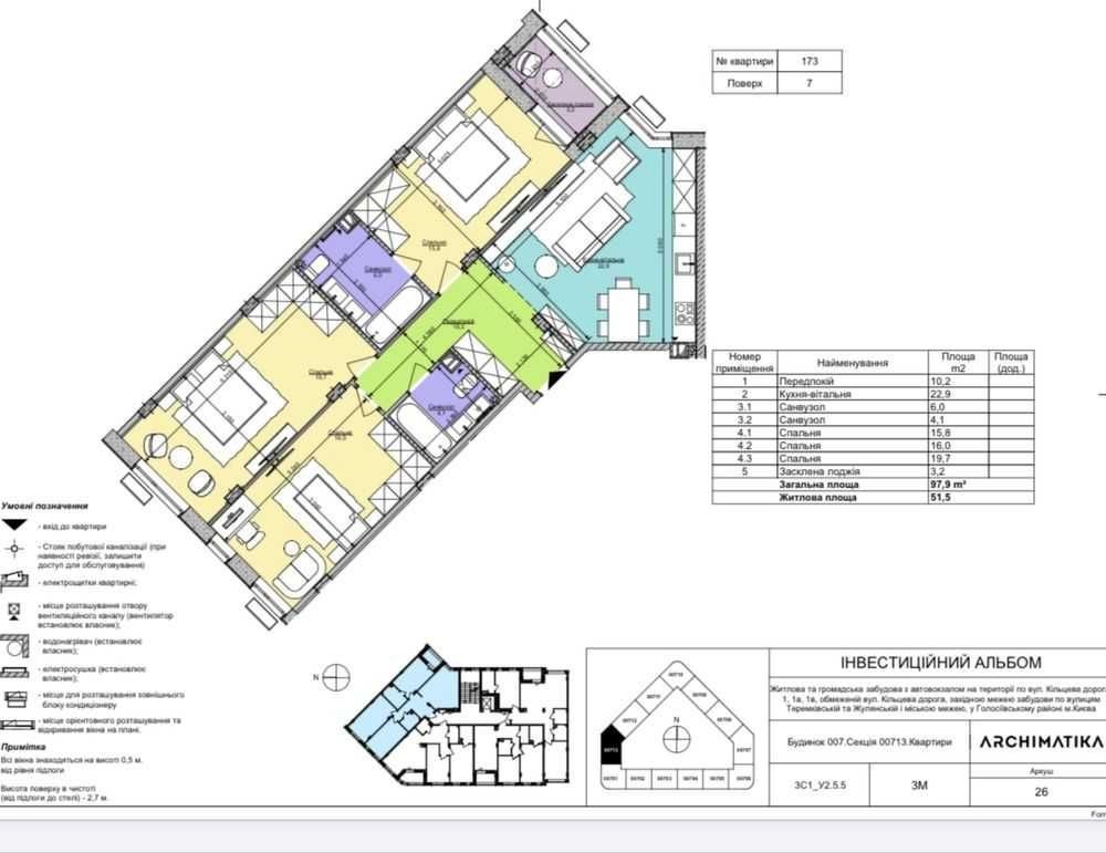 Продається простора 3-кімнатна квартира загальною площею 98 м², розташована на 7 поверсі 9-поверхового будинку в одному з найкращих житлових комплексів Києва — ЖК «Respublika», за адресою бульвар Тадея Рильського, 3.