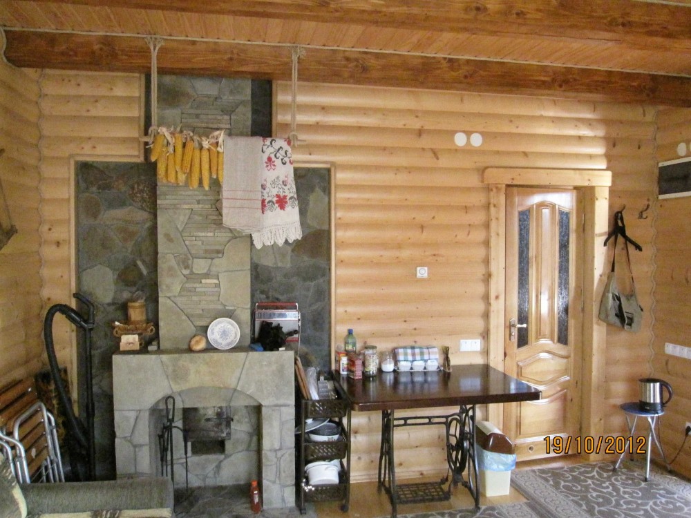 кухня-вітальня з каміном;