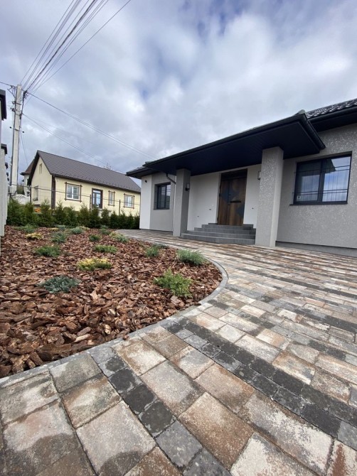 Площа 230 кв. Ділянка 6 соток квадратної форми (всі під забудову). Ландшафтний дизайн по всій території, є капельний полив. Тротуарна плитка. До будинку підходить якісний асфальтований під‘їзд. Два входи в будинок.