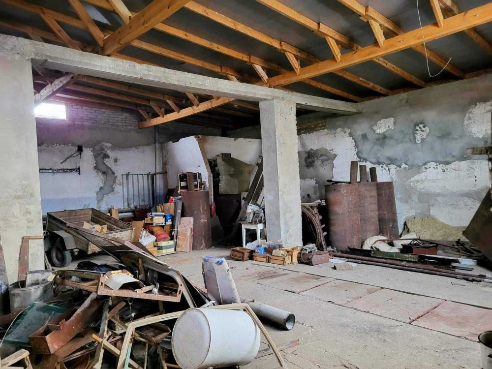 Основне приміщення: 12х11,5 м (138 м2), двоє металевих воріт, оглядова яма, вхід в підвал