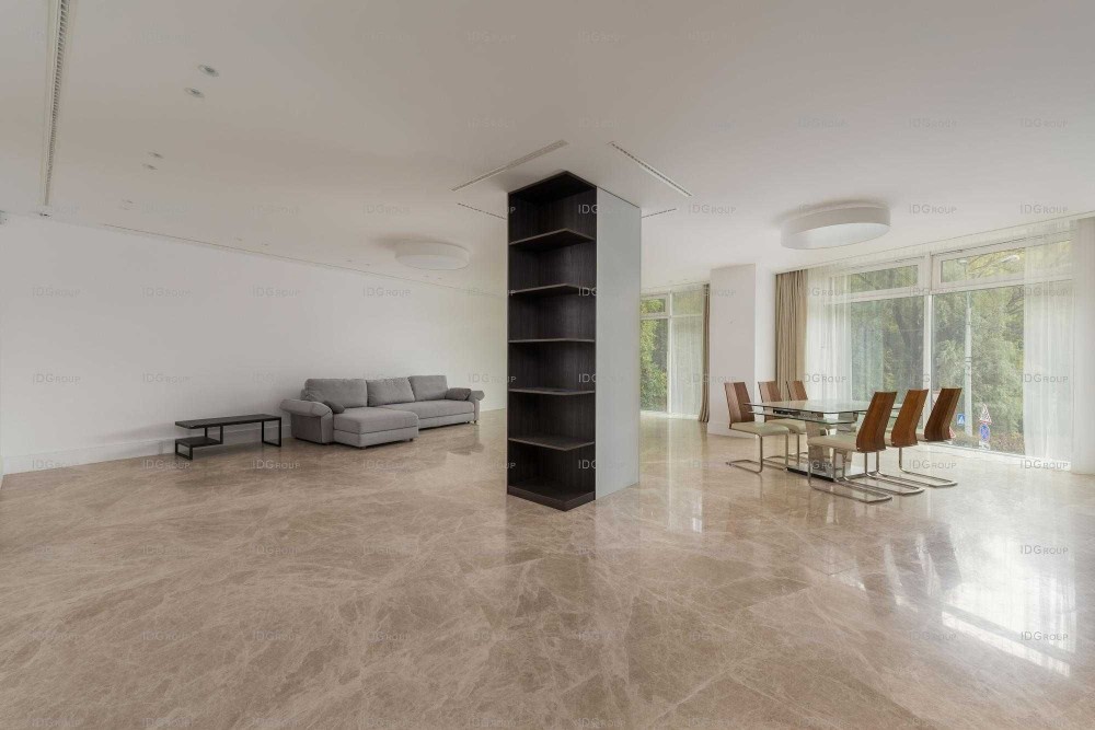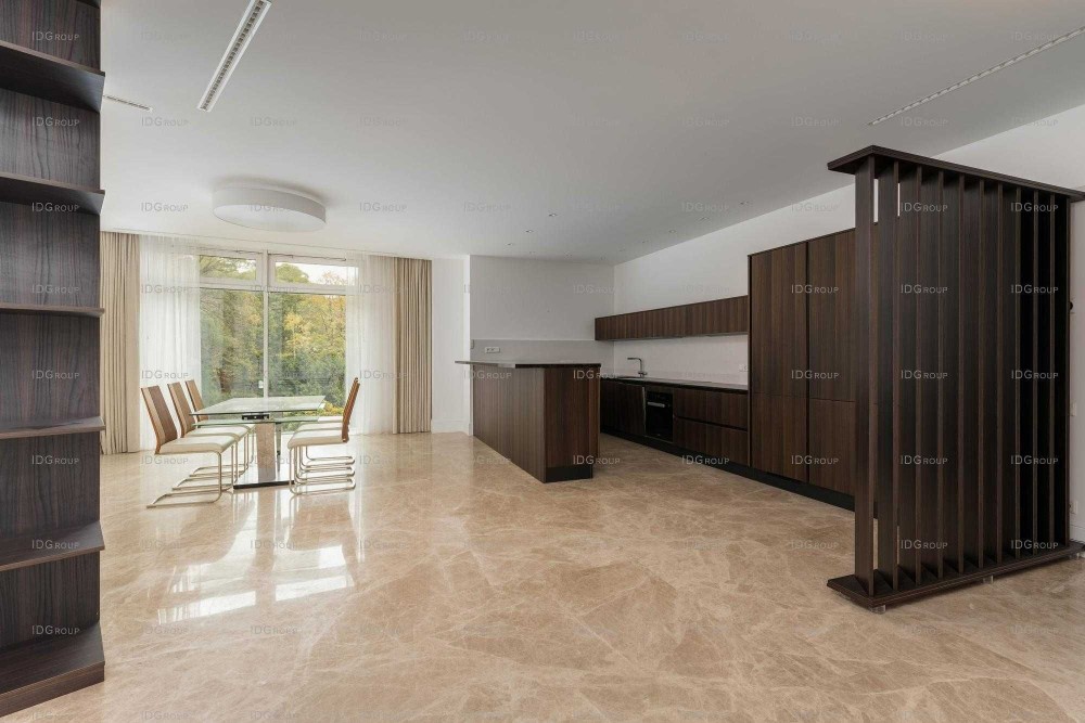 Апартаменти витримані в єдиній світлій кольоровій гамі і дарують відчуття гармонії та затишку. Простора вітальня з панорамними вікнами і видом на пишну зелень ботсаду з'єднана з кухнею-їдальнею в одному просторі. Стильна кухня повністю обладнана першокласною побутовою технікою. Витонченість і розкіш відчуваються і в інших приміщеннях: майстер-спальня з особистою гардеробною і ванною кімнатою, дві спальні з особистими ванними кімнатами, гостьовий с/у, пральня.