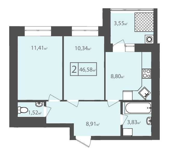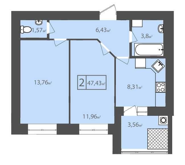 • Общая площадь 47 м2