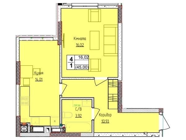 • Общая площадь 46 м2