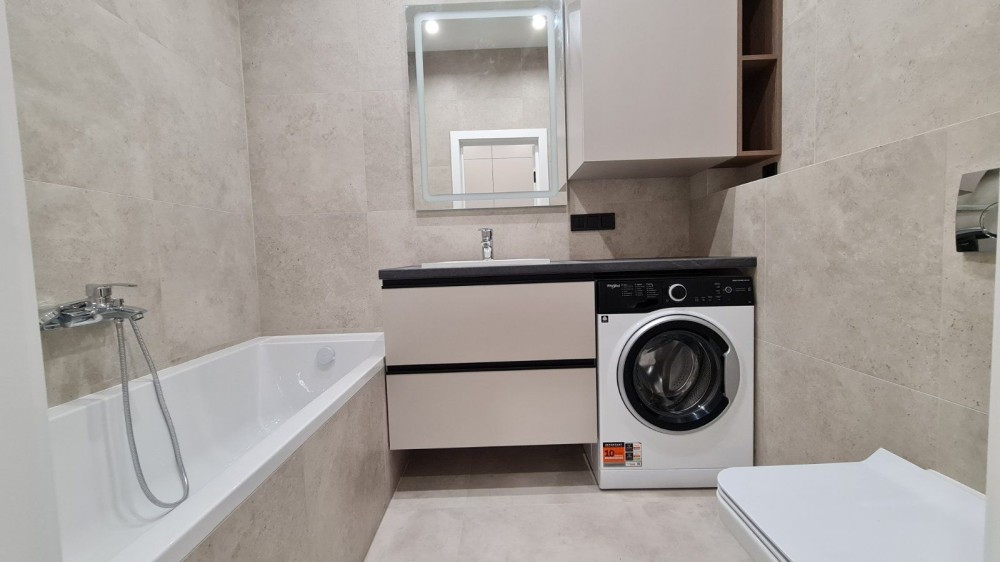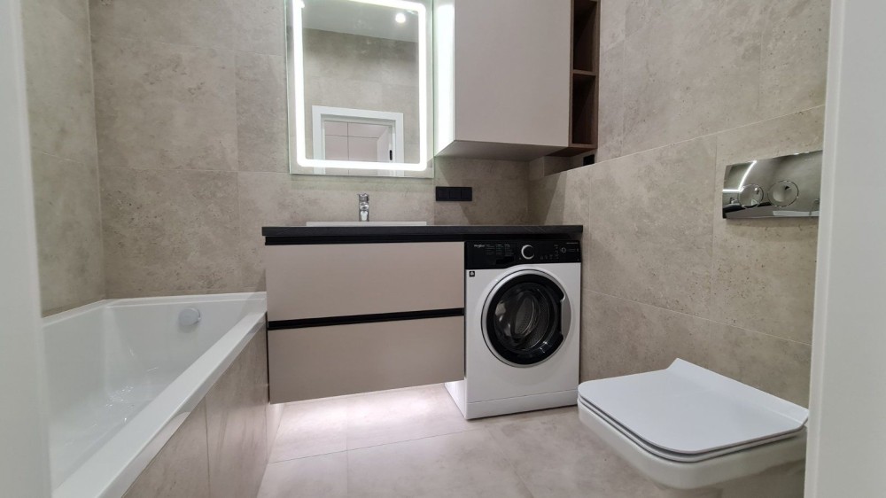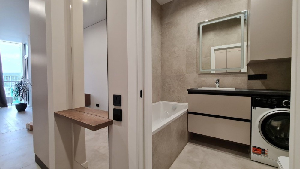 Абсолютно новий ремові, меблі та дороговартісна нова техніка для дому. Смарт ТВ. Індукційна плита від фірми Zanussi, ,кондиціонер та пральна машина Electrolux, багатофункціональний кухонний змішувач води, вмістовна посудомийка, вбудований холодильник та морозильна камера. А ще підлога з двозональним підігрівом та зручним електрокеруванням до неї.