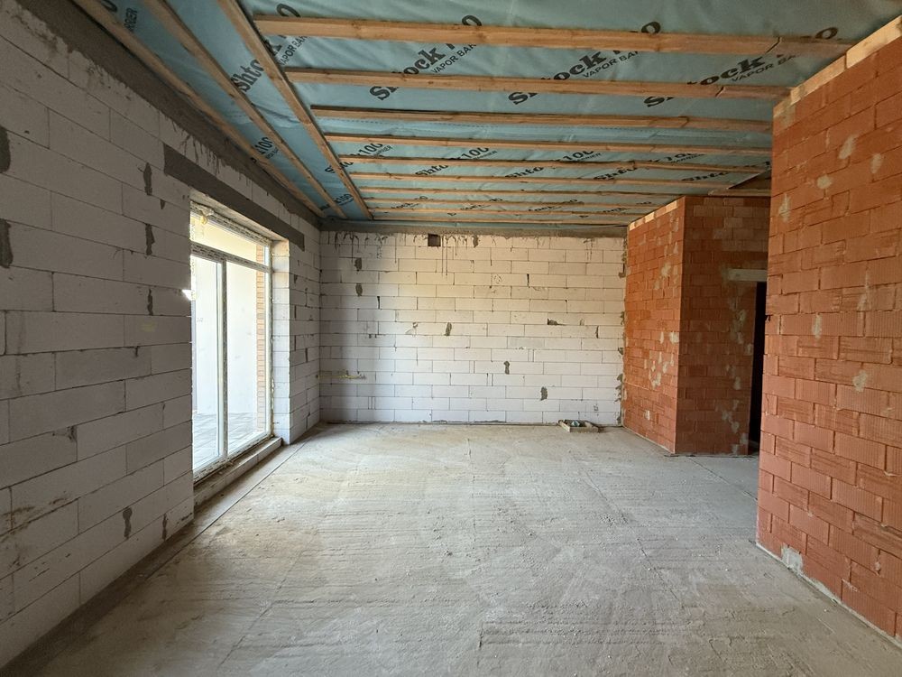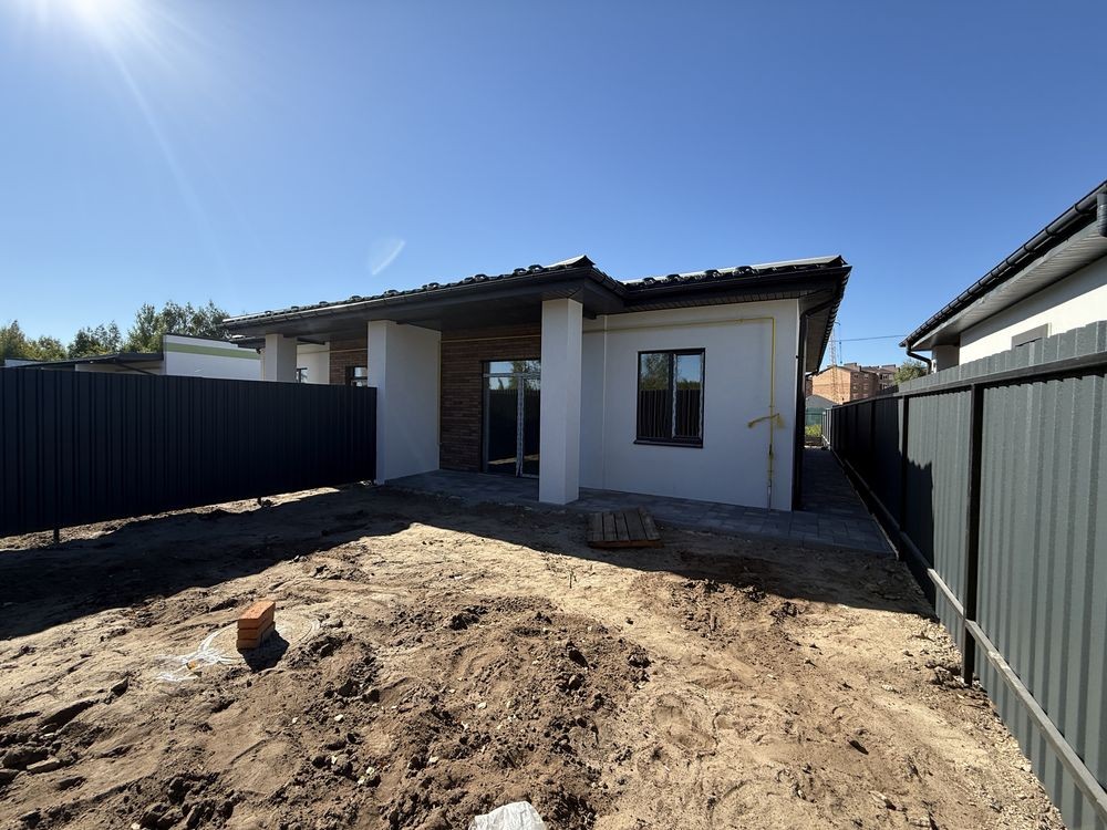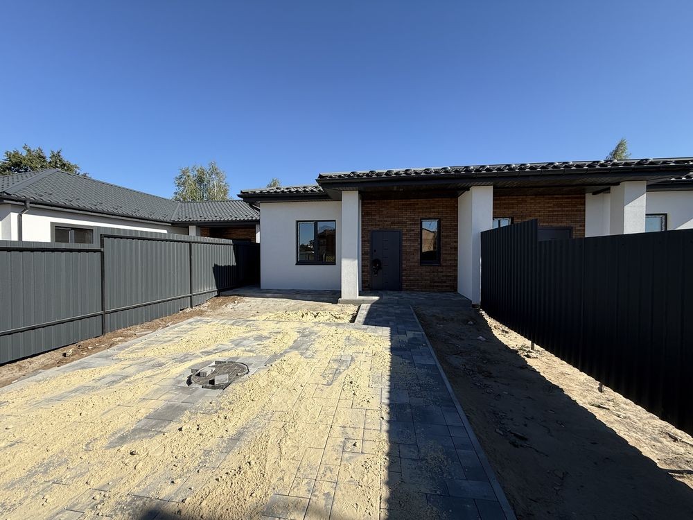 Одноповерховий дуплекс, все продумано: простора кухня-вітальня, дві окремі спальні, два санвузли, тамбур.