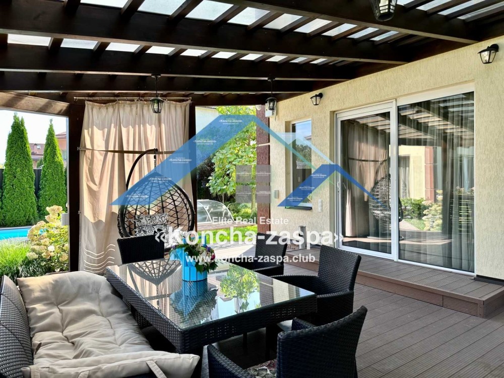 На территории участка 12 соток расположились – основной дом 416 м2 (2 этажа + цоколь), баня с полноценным барбекю, зоной отдыха, бассейн, зона барбекю, вольер для собаки с небольшим хозпомещением, детский домик из дерева. Дом строился для себя, из качественных материалов. 1-й этаж – просторная прихожая, гардеробная, большая гостиная с камином, кухня, столовая с выходом на террасу, с/у. 2-й этаж – хозяйская спальня + гардероб и выход на террасу, 2 детские спальни, гостевая и с/у. Цоколь - тренажерный зал полностью оборудованный, кабинет, кинотеатр с минибаром, большая гардеробная, постирочная (стирка, сушка и стеллажи для хранения), хоз. помещение, кладовка для консервации, котельная (находятся все котлы – газовый и твердотопливный с бункером для автоматической подачи пеллет,очистка воды, промежуточный резервуар, при необходимости там сохраняется около 800л воды,также установлены три стабилизатора на каждый этаж), с/у. Гараж на 2 автомобиля + открытая парковка. На участке выполнен красивый ландшафтный дизайн. Также стоит очистка воды, солнечные батареи на воду, за баней находится помещение с генератором и бак для автополива.