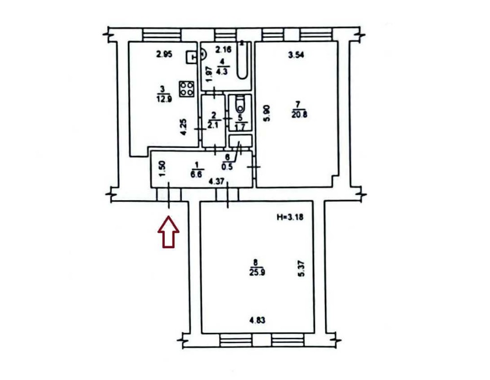 - Висота стелі: 3,18 м
