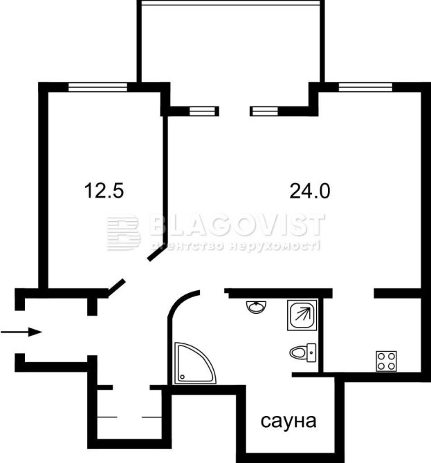 • Площадь кухни 5 м2