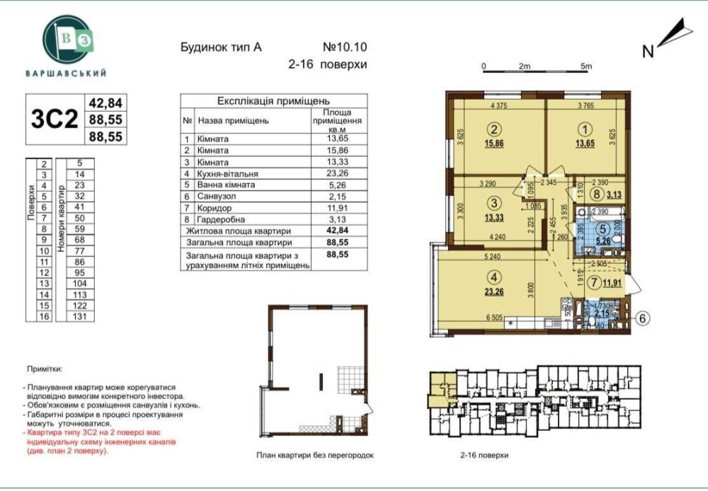 Выговского И., ЖК "Варшавский 3", дом 10.10, тип 3С2(89м)